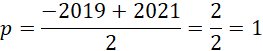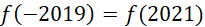 , to wiemy, że oś symetrii paraboli (czyli również pierwsza współrzędna wierzchołka paraboli) leży idealnie pomiędzy argumentami -2019 i 2021. Wyznaczymy tą współrzędną ze średniej arytmetycznej tych dwóch argumentów.