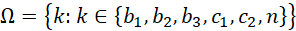 Wszystkie kule są rozróżnialne. Ich zbiór można oznaczyć więc jako: {b1, b2, b3, c1, c2, n}.