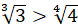 Zapisz podane pierwiastki w postaci potęg o takim samym wykładniku. Zauważ, że 81 jest większe od 64.