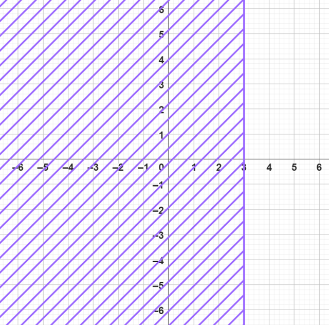 Podany zbiór punktów to cała płaszczyzna na układzie współrzędnych na lewo od liczby 3 włącznie na osi OX i rozciągająca się w nieskończoność wzdłuż osi OY. Narysujmy go w układzie współrzędnych.