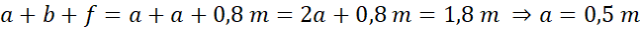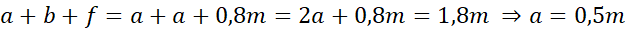Przyjrzyjmy się chuście, którą utworzył trójkąt ABC. Wiadomo, że a = b, f = 0,8 m oraz a + b + f = 1,8 m. Możesz więc wyliczyć a: