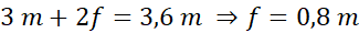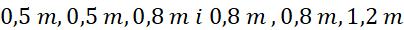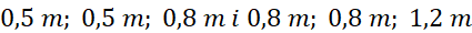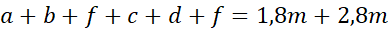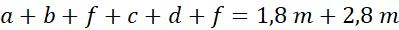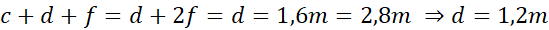 W przypadku drugiej chusty (trójkąt ACD) wiadomo, że c = f = 0,8 m oraz c + d + f = 2,8 m. Możesz więc wyliczyć d: