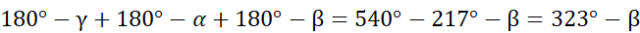 Znając z rysunku kąty zewnętrzne trójkąta α, β, 𝛾, oblicz β, skoro