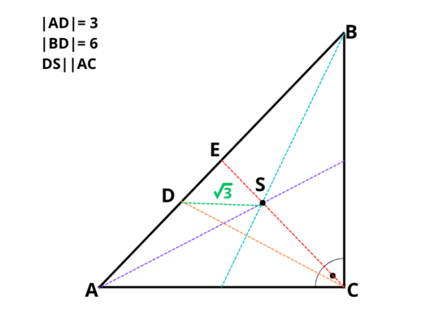 Z twierdzenia odwrotnego do twierdzenia Talesa wynika, że odcinek DS nie jest równoległy do odcinka AC.