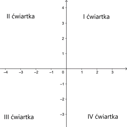 Jeżeli wykres funkcji przechodzi przez II, III i IV ćwiartkę układu współrzędnych to jego współczynnik kierunkowy musi być mniejszy od zera, a jego wyraz wolny też musi być mniejszy od zera.