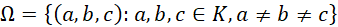 Pojedynczym zdarzeniem będzie pewna grupa 3 elementów (oznaczających trójkę rodzeństwa), gdzie każdy z nich przyjmuje jedną z 16 wartości ze zbioru kart K. Karty losowane są bez zwracania, wartości te muszą być więc od siebie różne.