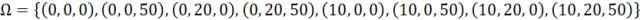 Zauważ, że przestrzenią zdarzeń elementarnych będą pewne trójki elementów, gdzie każdy z nich może przyjąć jedną z dwóch wartości: 0 lub wartość liczbową nominału odpowiedniej monety.