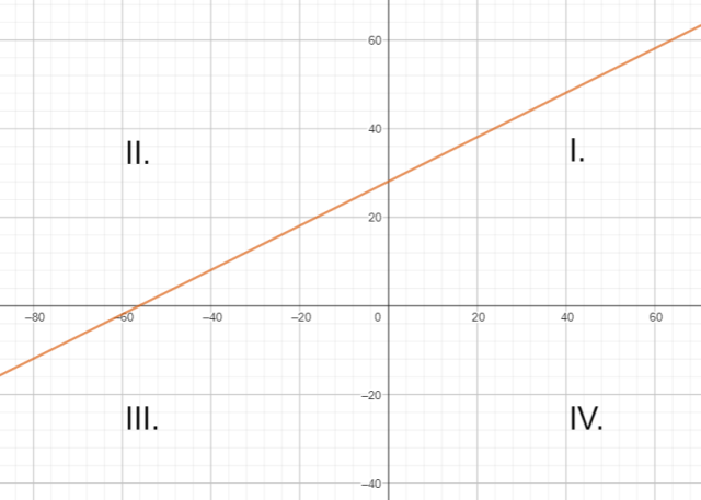 Funkcja przechodzi przez ćwiartki I, II i III.