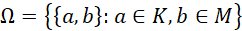 Pojedynczym zdarzeniem elementarnym będzie zbiór dwóch elementów, gdzie pierwszy z nich przyjmuje dowolną wartość ze zbioru K, a drugi dowolną wartość ze zbioru M.
