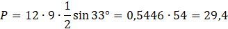 Skorzystaj ze wzoru na pole trójkąta, znając 2 boki i kąt między nimi.