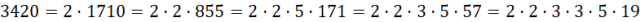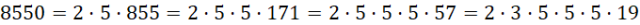 Rozłóż liczby: 39, 94, 108, 510, 1156, 3420, 4830, 8550 na czynniki pierwsze.