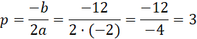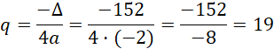 . Następnie zauważ, że współczynnik a funkcji jest ujemny, więc parabola jest skierowana ramionami w dół, zatem zbiór wartości funkcji będzie od minus nieskończoności do współrzędnej q wierzchołka.