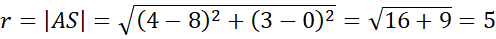 wyznacz długość odcinka AS, czyli promienia tego okręgu. Następnie skorzystaj z tego, że równanie okręgu można opisać za pomocą wzoru: