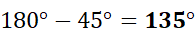 Suma kątów czworokąta wynosi 360° stopni. Proste są styczne pod kątem 90° stopni. Aby obliczyć miarę kąta α, oblicz różnicę 180° stopni i danego kąta.
