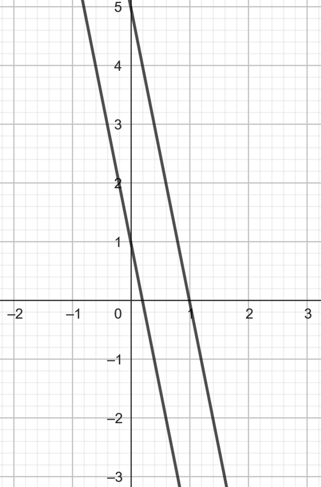 Wykresy funkcji są równoległe, czyli współczynniki kierunkowe a obu funkcji są takie same.