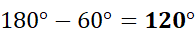 Suma kątów czworokąta wynosi 360° stopni. Proste są styczne pod kątem 90° stopni. Aby obliczyć miarę kąta α, oblicz różnicę 180° stopni i danego kąta.