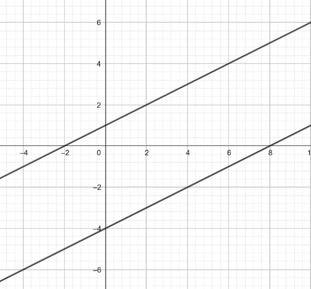 Wykresy funkcji są równoległe, czyli współczynniki kierunkowe a obu funkcji są takie same.