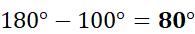 Suma kątów czworokąta wynosi 360° stopni. Proste są styczne pod kątem 90° stopni. Aby obliczyć miarę kąta α, oblicz różnicę 180° stopni i danego kąta.