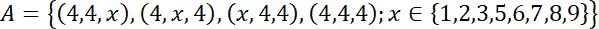 Wyznacz, ile zdarzeń elementarnych sprzyja zdarzeniu A - co najmniej dwie cyfry otrzymanej liczby są równe 4, jeśli ze zbioru cyfr różnych od 0 losujemy kolejno trzy cyfry ze zwracaniem i tworzymy liczbę trzycyfrową.