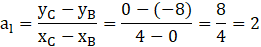 Wyznacz współczynnik a prostej przechodzącej przez punkty A i B.