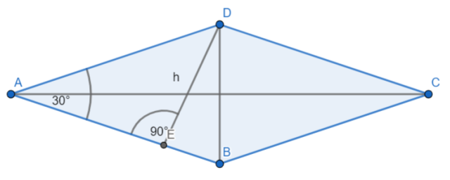 Wysokość rombu wyznaczyła nam trójkąt prostokątny AED, o kącie 30° - czyli można zauważyć, że jest to trójkąt szczególny.