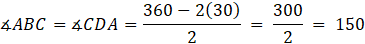 Kąty rombu przy wierzchołkach B i D mają wartość