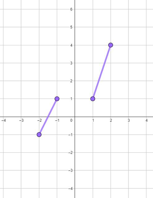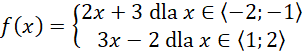 Narysuj podane fragmenty funkcji w odpowiadających im przedziałach. Pamiętaj przy zaznaczaniu krańców prostej, że jeżeli punkt ten należy do dziedziny, oznaczamy go wypełnionym kółkiem, a jeżeli nie należy, oznaczamy to kółkiem niewypełnionym.
