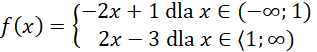 Narysuj podane fragmenty funkcji w odpowiadających im przedziałach. Oznacz miejsce złączenia się prostych kółkiem z wypełnieniem, aby wskazać, że ono również należy do wykresu.