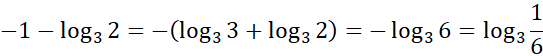 Aby rozwiązać to zadanie zacznij od zamiany liczby -1 na równoważny jej logarytm o podstawie takiej samej jak logarytm, który należy odjąć. Wykorzystaj własności logarytmów