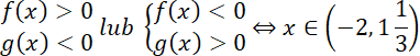 Wyznacz zbiór argumentów, dla których obie funkcje przyjmują wartości różnych znaków.