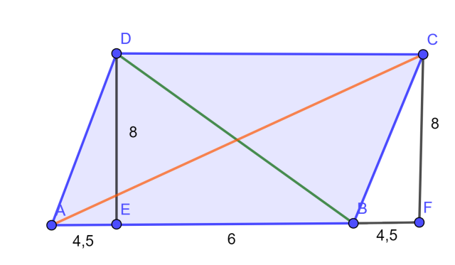 W tym zadaniu musisz obliczyć długości przekątnych równoległoboku.