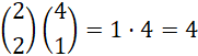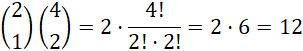 Spośród grupy dwóch kobiet losowo wybierana jest jedna, a spośród czterech mężczyzn wybierane jest dwóch. Ilość sposobów ich wyboru prezentuje działanie: