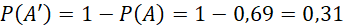Skorzystaj ze wzoru na prawdopodobieństwo zdarzenia przeciwnego: