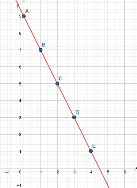 (0, 9), (1, 7), (2, 5), (3, 3), (4, 1)
