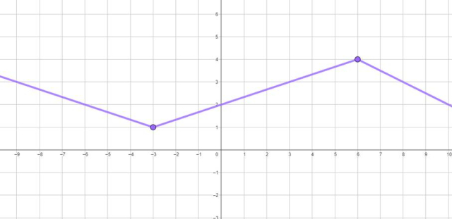 Narysuj podane fragmenty funkcji w odpowiadających im przedziałach. Oznacz miejsce złączenia się prostych kółkiem z wypełnieniem, aby wskazać, że ono również należy do wykresu.