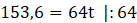 Samochód porusza się z prędkością 64 km/h. Oblicz, ile samochodowi zajmie pokonanie drogi 153,6 km jadą z prędkością 64