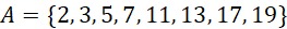 A jest zbiorem liczb pierwszych mniejszych od 20,