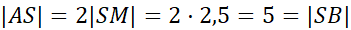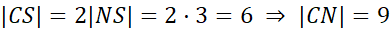 Szukasz długości odcinków |CN| oraz |SB|. Wiadomo, że w dowolnym trójkącie środkowe przecinają się w jednym punkcie i dzielą się w stosunku 1:2. Wynika z tego więc, że