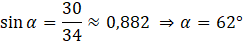 Wyznacz kąty równoległoboku z dokładnością do 1°, gdzie jeden z boków ma 34 cm długości, a wysokość opuszczona na drugi bok wynosi 30 cm.