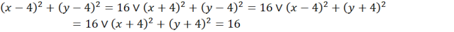 Zapisz równanie okręgu o promieniu 4, który jest styczny do obu osi układu współrzędnych.