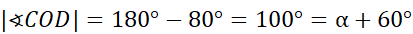 Znajdź kąty trójkąta o wierzchołku w punkcie D i boku utworzonym przez średnicę AB. Zauważ, że trójkąt COD jest równoramienny.