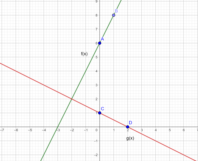 Masz już po dwa punkty należące do wykresów. Narysuj wykresy.