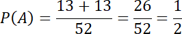 Wyznacz prawdopodobieństwo wylosowania karty, która jest treflem lub pikiem, z jeśli talii 52 kart losujemy jedną kartę.