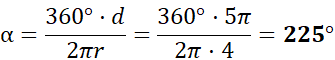 Kąt środkowy oblicz ze wzoru na długość łuku: