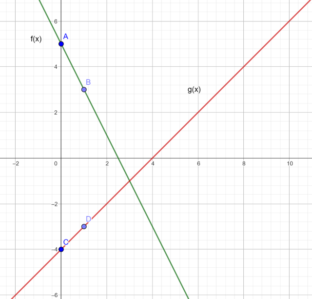 Masz już po dwa punkty należące do wykresów. Narysuj wykresy.