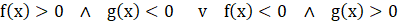 Funkcje przyjmują wartości o różnych znakach, kiedy jedna przyjmuję dodatnie, a druga ujemne.