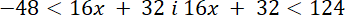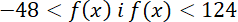 Wyznacz zbiór argumentów, dla których funkcja f przyjmuje wartości należące do przedziału (-48, 124).