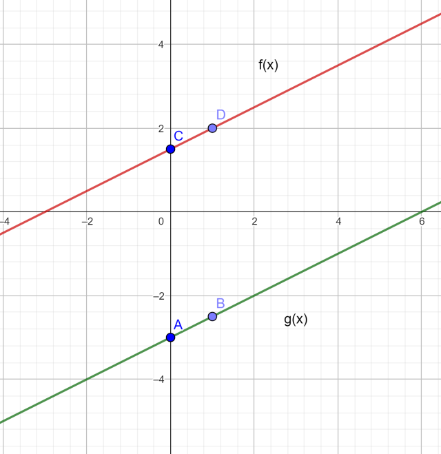 Masz już po dwa punkty należące do wykresów. Narysuj wykresy.