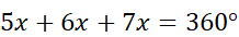 Punkty A, B, C dzielą okrąg na trzy łuki, których stosunek długości wynosi 5:6:7. W tym zadaniu musisz obliczyć miary kątów trójkąta ABC.