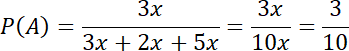 Wyznacz prawdopodobieństwo wybrania osoby z klasy II a, jeśli liczby uczniów z klas II a, Il b i ll c uczęszczających na SKS pozostają odpowiednio w stosunku 3: 2: 5, a z tej grupy uczniów wybrano losowo jedną osobę.